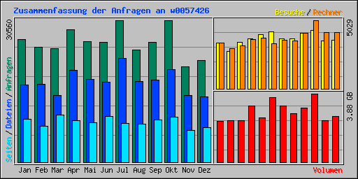 | Tag | Anfragen | Dateien | Seiten | Besuche | Rechner | Volumen | Vol. In | Vol. Out | ||||||||